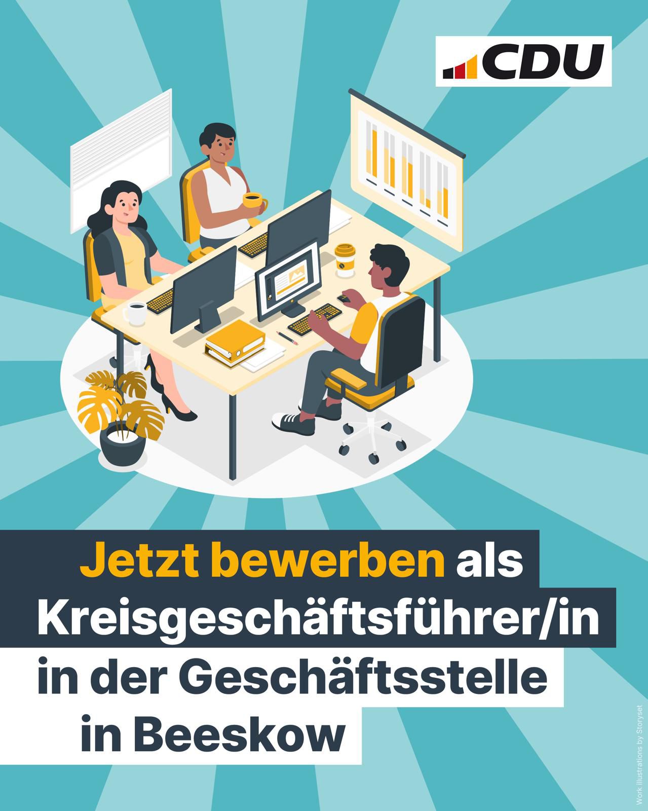 Die CDU Oder-Spree sucht für ihre Kreisgeschäftsstelle in Beeskow zum 1. November 2025 eine/n Kreisgeschäftsführer/in (Teilzeit oder Minijob, ca. 20 Stunden/Woche).